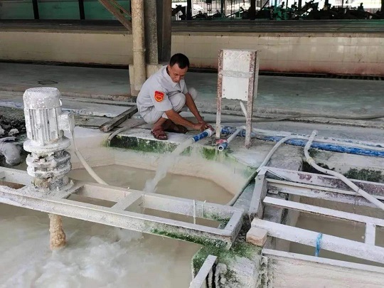 金山加工分公司破解了TSR-10灰分超標難題,管理人員在調節石灰水。潘升煜 攝