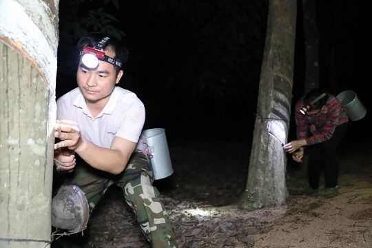 膠工是橡膠產業可持續發展的決定因素。割膠工作凌晨時分進行,勞動強度大,技術要求高,海南橡膠始終心系膠工困苦,踐行“以人民為中心”的發展思想,通過增產促收、完善橡膠收入保險制度、深化割膠機制改革等措施,著力提升膠工收入,讓他們更有尊嚴、更加體面地工作,為橡膠產業注入源源不斷的動力。