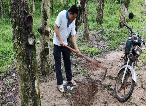 膠工施肥現(xiàn)場。