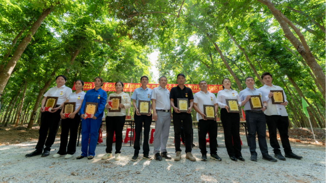 4月22日,在海南橡膠2025年橡膠生產誓師大會暨橡膠開割啟動儀式上,10名海南橡膠“最美奮斗者”獲得表彰。